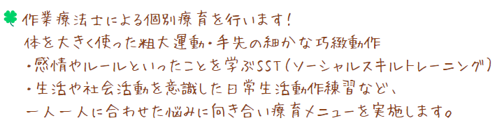 ③お子様としっかりと向き合い、喜怒哀楽を共にしたり、それぞれのお子様に合わせた支援を行いたいと思います。
