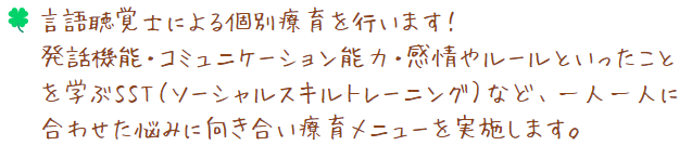 対象児童 | 発達に心配のある、障がいをもった児童(0~12歳の小学生まで) |